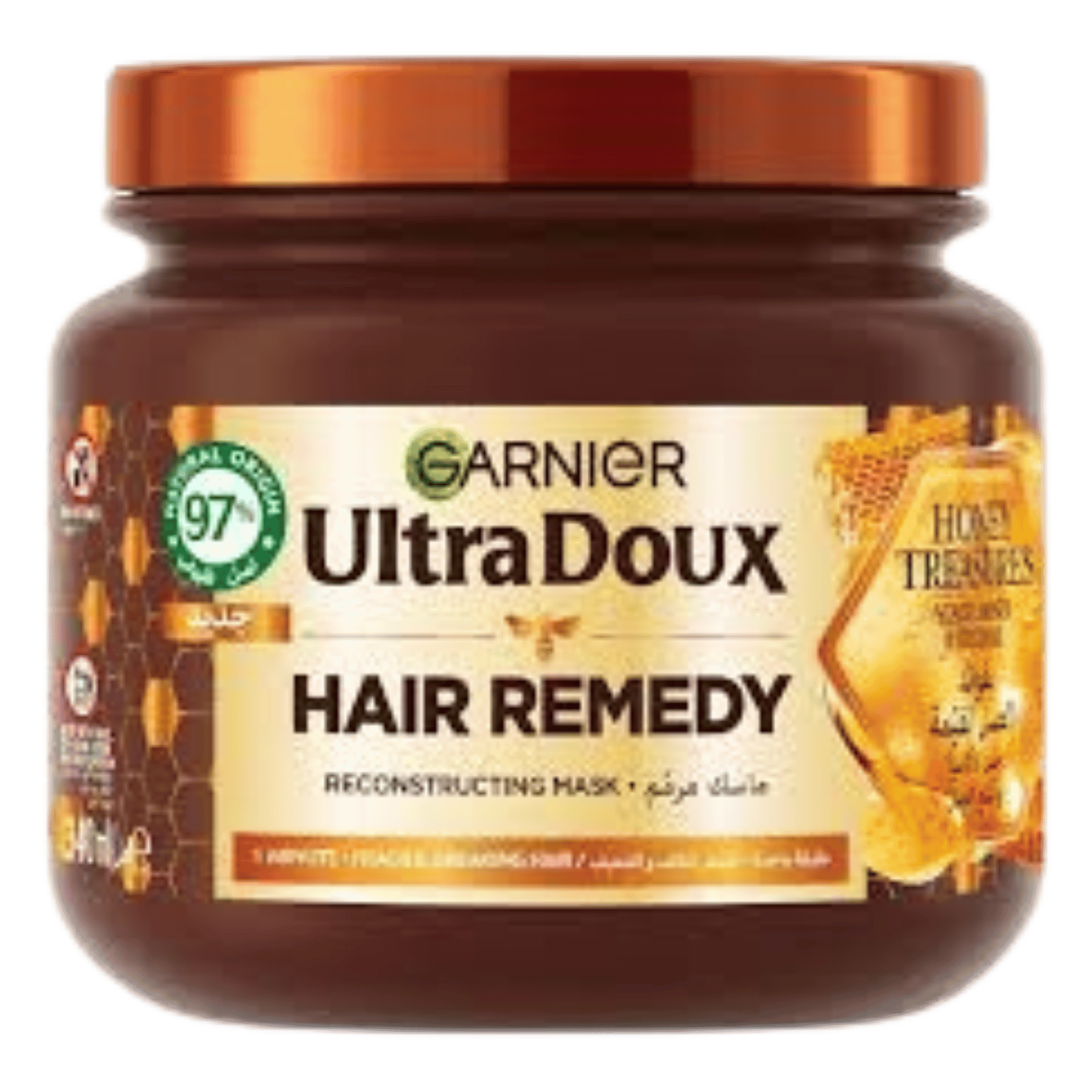 Garnier Ultra Doux Honey Treasures Hair Remedy Mask (340ml) is a rich, restorative treatment formulated to repair and strengthen damaged or brittle hair. Infused with honey, royal jelly, and propolis, this nourishing blend helps fortify strands from root to tip, reducing breakage and restoring vitality. Its creamy texture deeply conditions without weighing hair down, leaving it soft, smooth, and resilient. Ideal for weekly use, Garnier Honey Treasures Hair Remedy revives tired hair with lasting hydration and a naturally healthy shine.