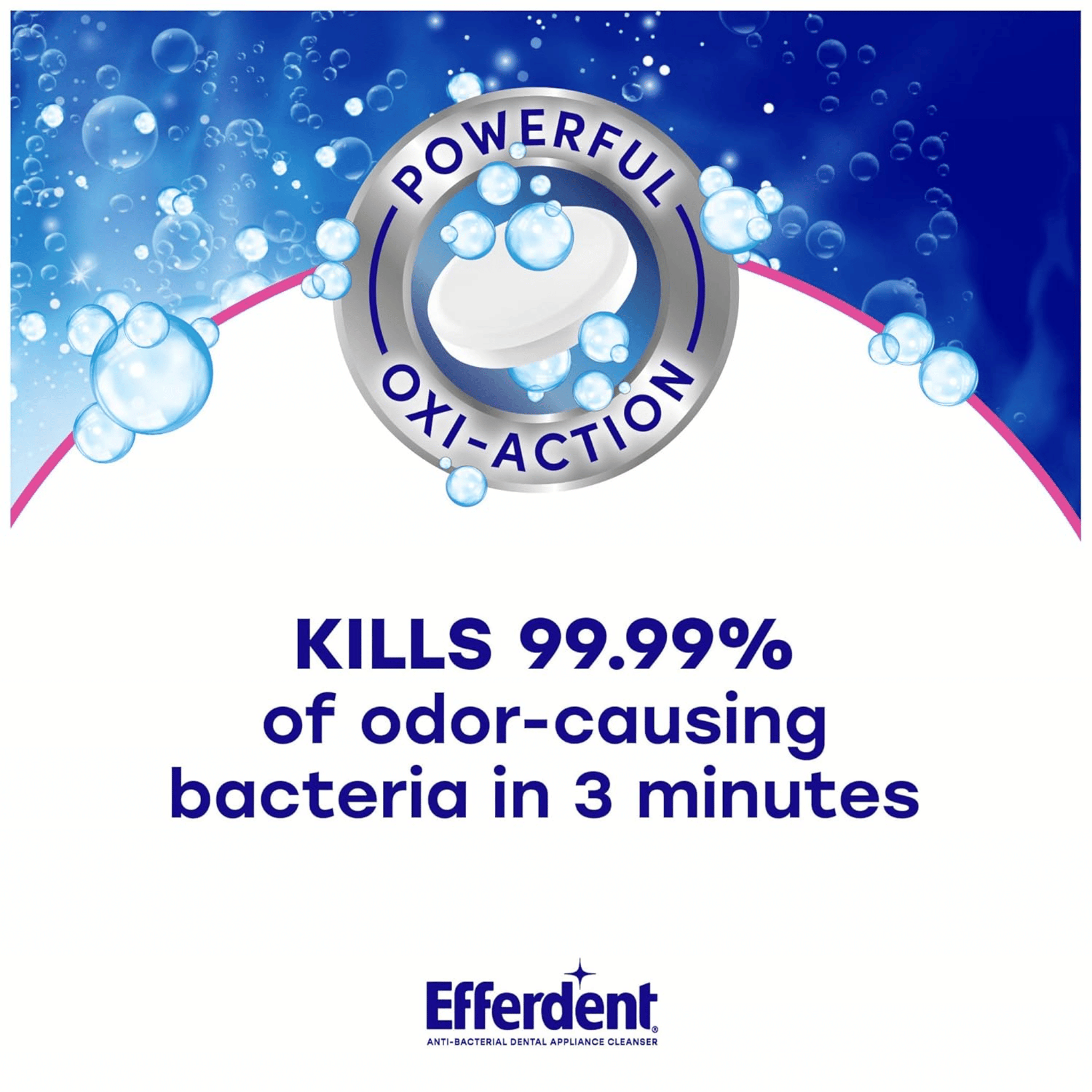 Efferdent Complete Clean is a highly effective dental appliance cleanser that kills 99.9% of odor-causing bacteria. Its powerful formula removes tough stains, plaque, and bacteria, leaving dentures, retainers, and other oral appliances clean and fresh. With 126 tablets in each pack, it's an easy and affordable way to maintain oral hygiene.
