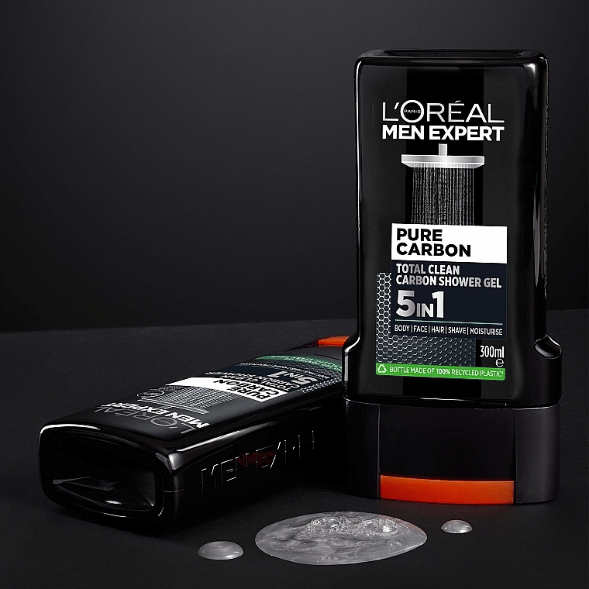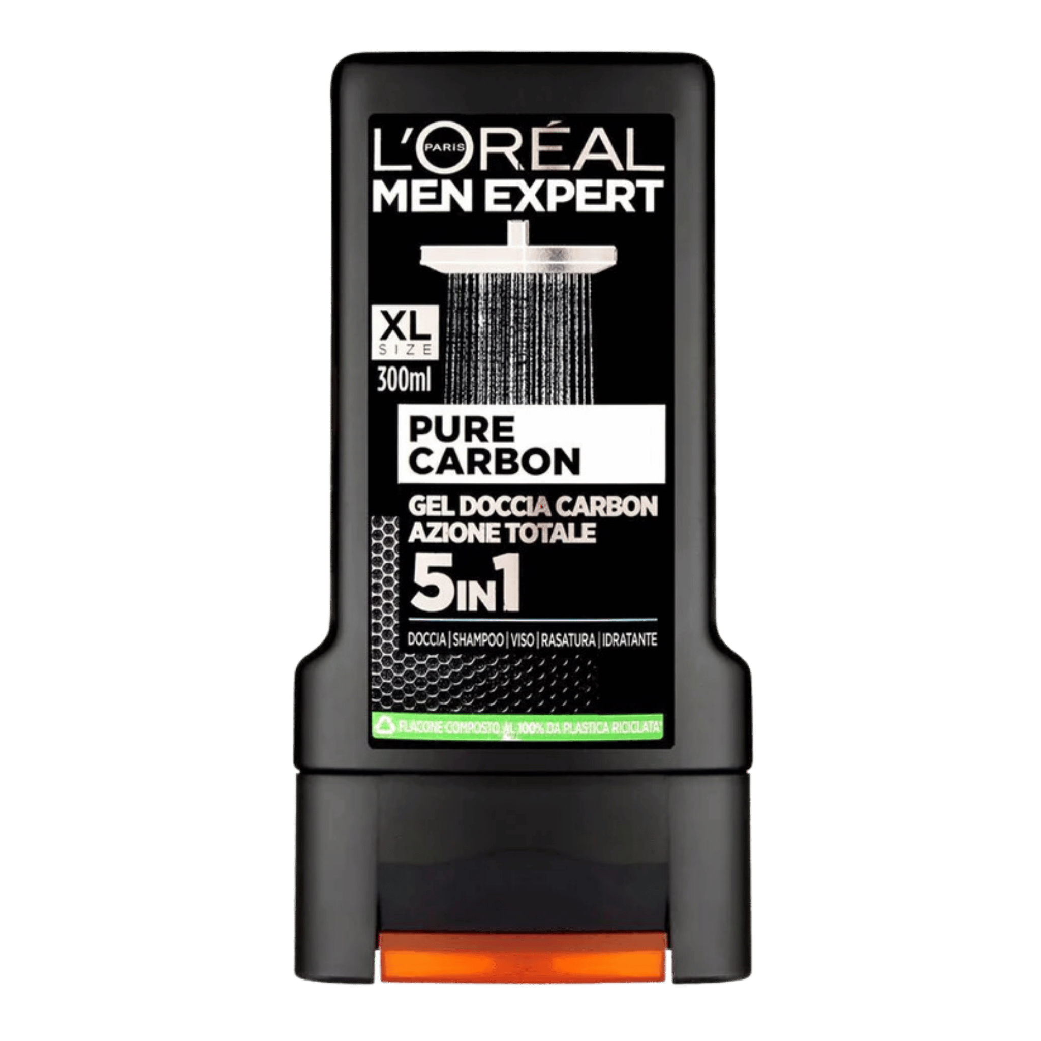 L'Oreal Paris Men Expert Pure Carbon 5 in 1 Shower Gel. This powerful formula cleanses, exfoliates, energizes, soothes, and moisturizes your skin in a single step.Formulated with the power of pure carbon, it effectively removes impurities, fights odor, and provides a deep clean for both your body and hair. The 5-in-1 formula works as a shower gel, shampoo, face wash, exfoliator, and deodorizer, offering a complete all-in-one solution for the modern man. Its invigorating scent and energizing formula leave your skin feeling refreshed and revitalized, making it ideal for daily use.