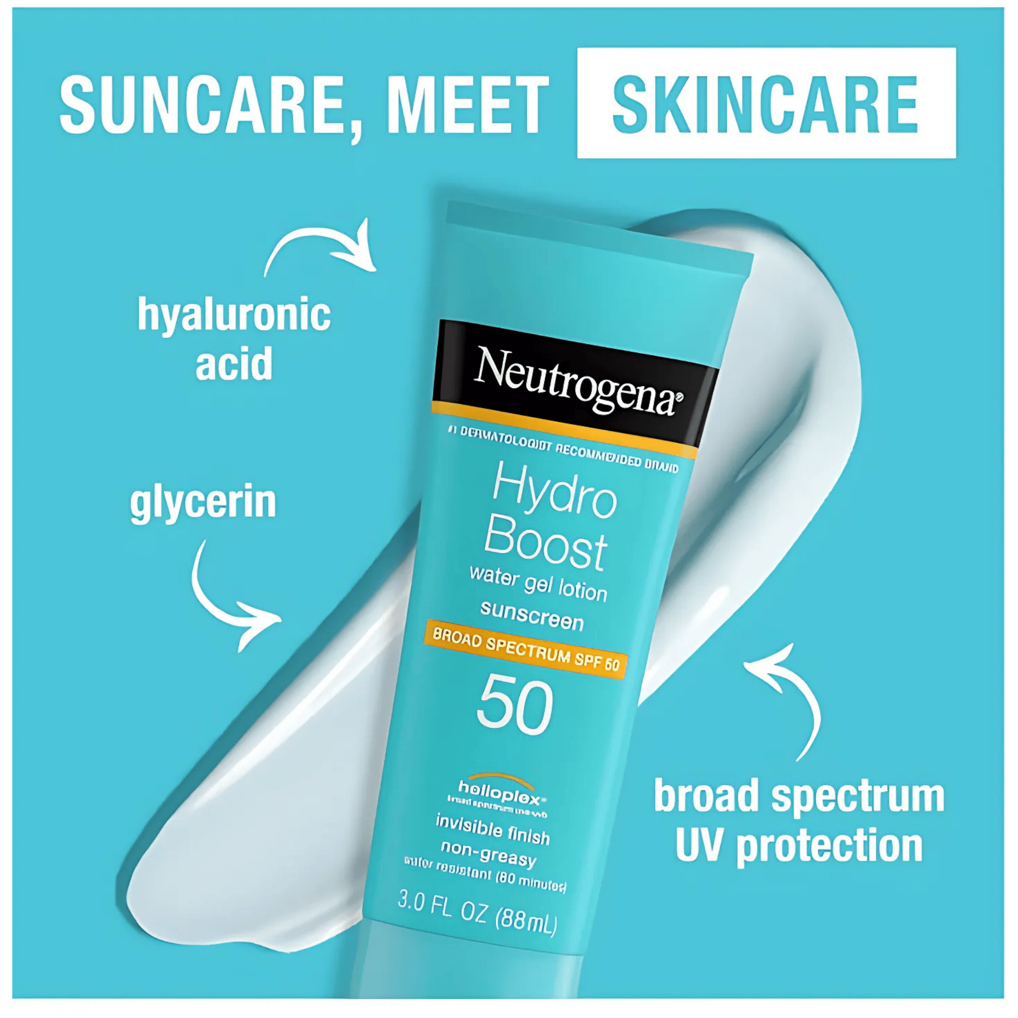 **Stay hydrated and protected with Neutrogena Hydro Boost Water Gel Lotion Sunscreen SPF 50. This innovative sunscreen blends powerful broad-spectrum UVA/UVB protection with the skin-quenching power of hyaluronic acid. The lightweight, water-gel texture melts effortlessly into the skin, providing instant hydration without feeling greasy. Formulated to be non-comedogenic, it won't clog pores, making it suitable for even sensitive skin. Experience the difference of a sunscreen that not only shields you from the sun but also leaves your skin feeling refreshed and deeply moisturized.