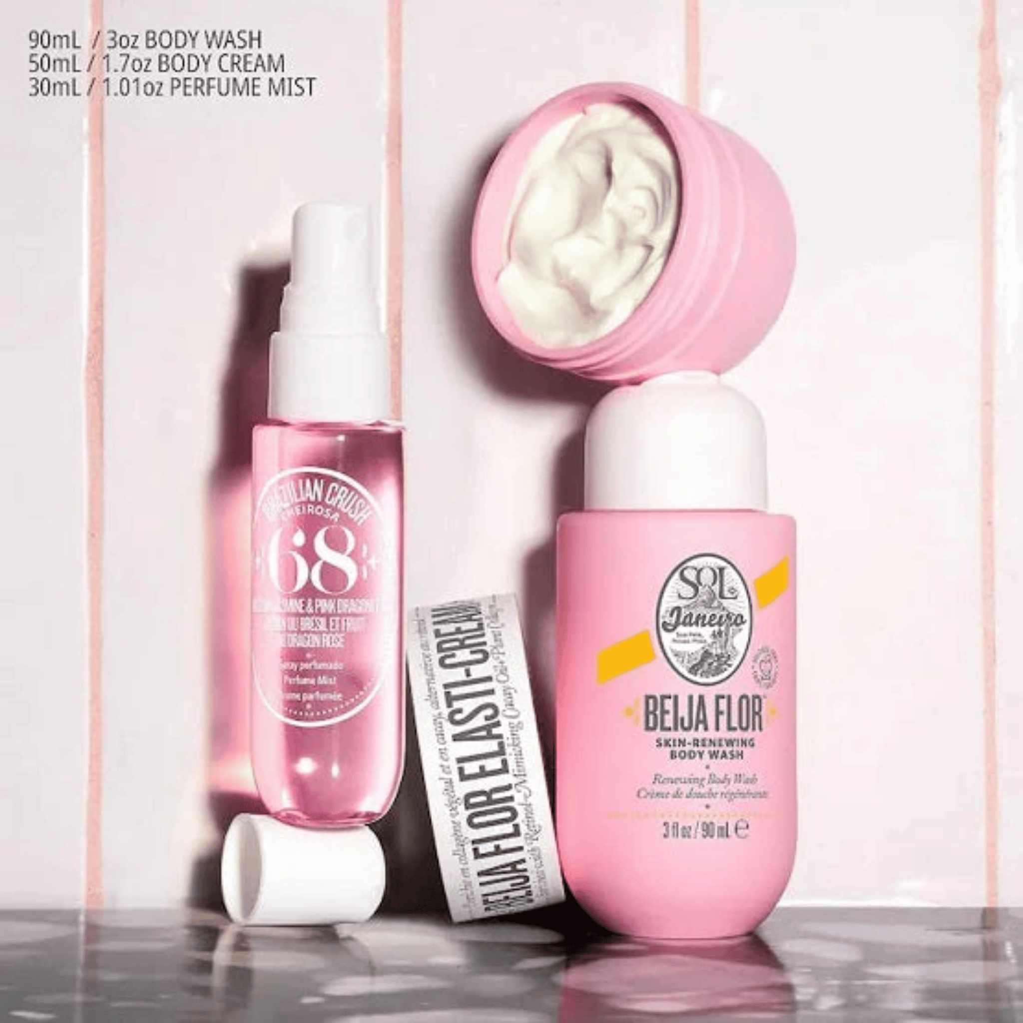 Experience a touch of Brazil's beauty with Sol de Janeiro's Beija Flor Jet Set at SkinStash. This travel-sized kit features three of Sol de Janeiro's best-selling products for a complete skincare routine on the go. Cleanse and hydrate with the Beija Flor Body Wash, enriched with cacay oil for gentle renewal. Boost elasticity and smooth skin with the Beija Flor Elasti-Cream. Finally, complete your pampering ritual with a spritz of the Cheirosa 68 Perfume Mist for a touch of their signature, sunkissed fragrance. SkinStash offers the Beija Flor Jet Set, your pocket-sized escape to radiant, healthy skin.